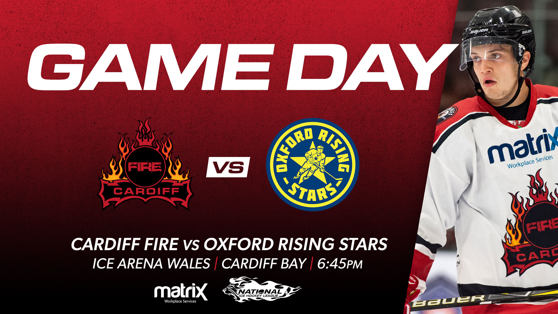 Fire fans, bring the noise and get behind the boys! Face-off is at 6:45pm with doors opening at approximately 6pm at Ice Arena Wales.