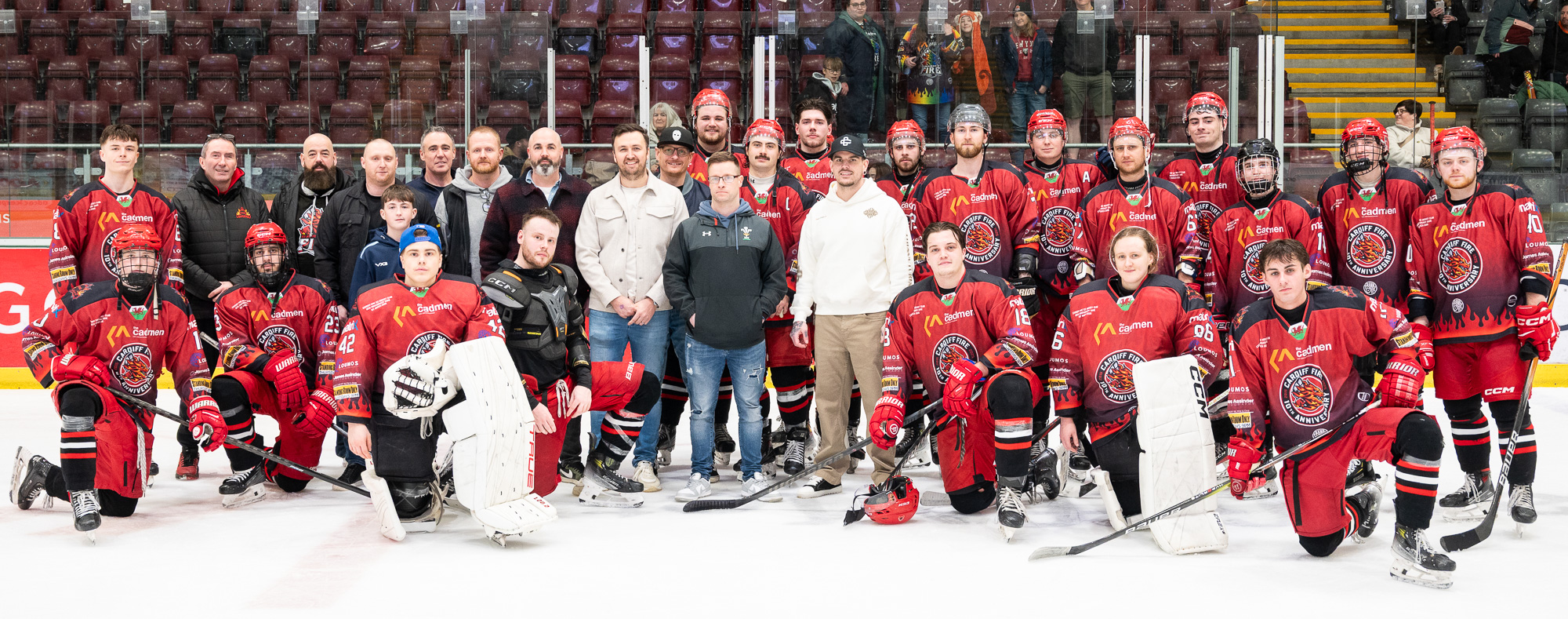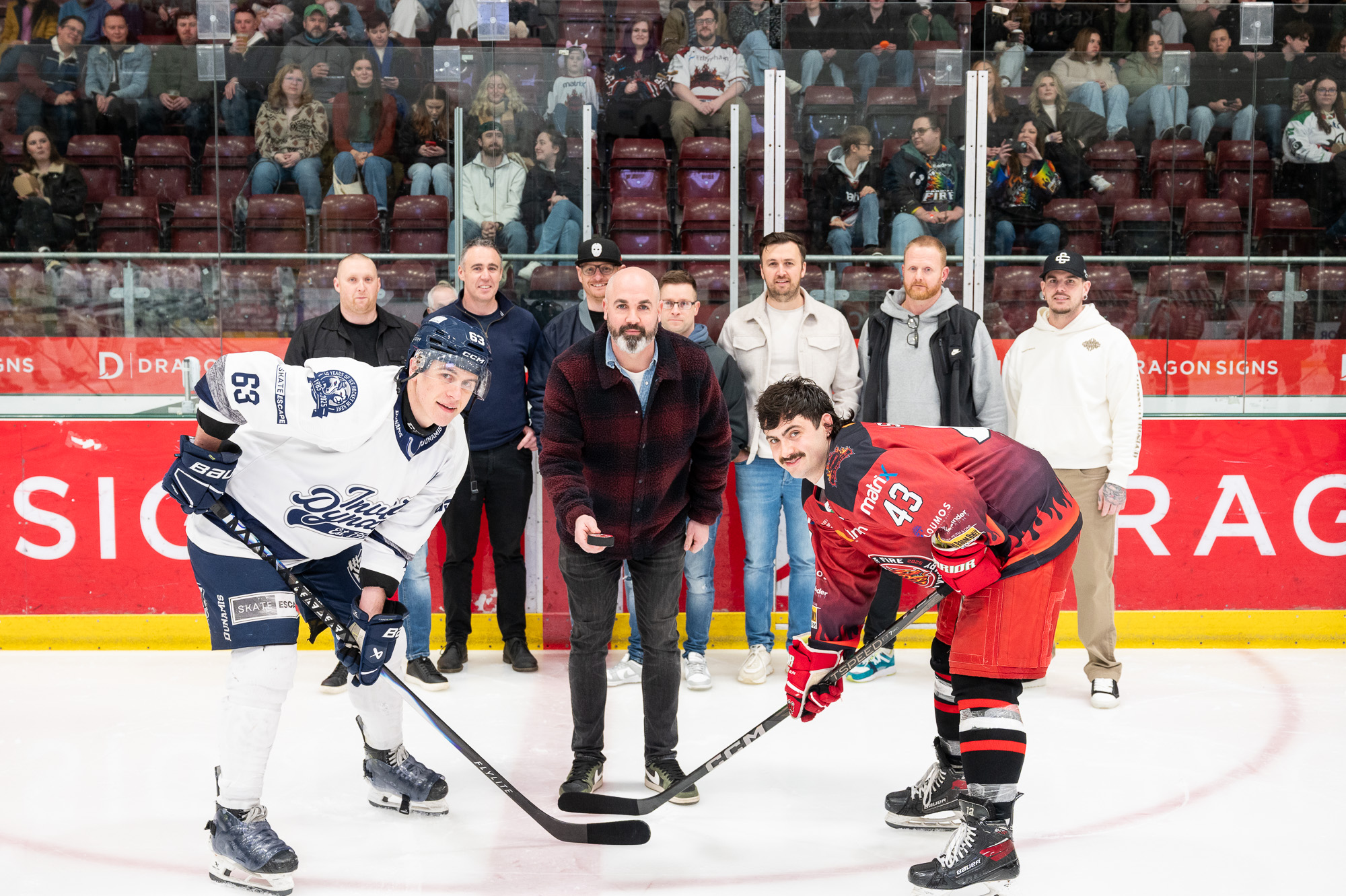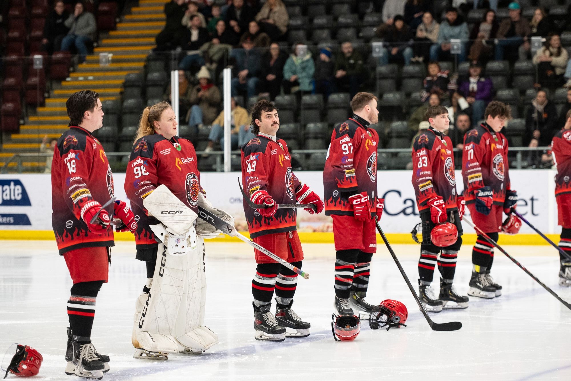 Whilst the result on ice wasn’t what the team had hoped for, the off-ice atmosphere was one to be celebrated, as just under 1,000 fans packed the stands at the Vindico Arena, bringing the noise and energy to spur the team to a performance they can be proud of. We were delighted to be joined by past Fire players on the ice for a ceremonial puck drop prior to the game and are grateful to those players for being a part of such a special night.
