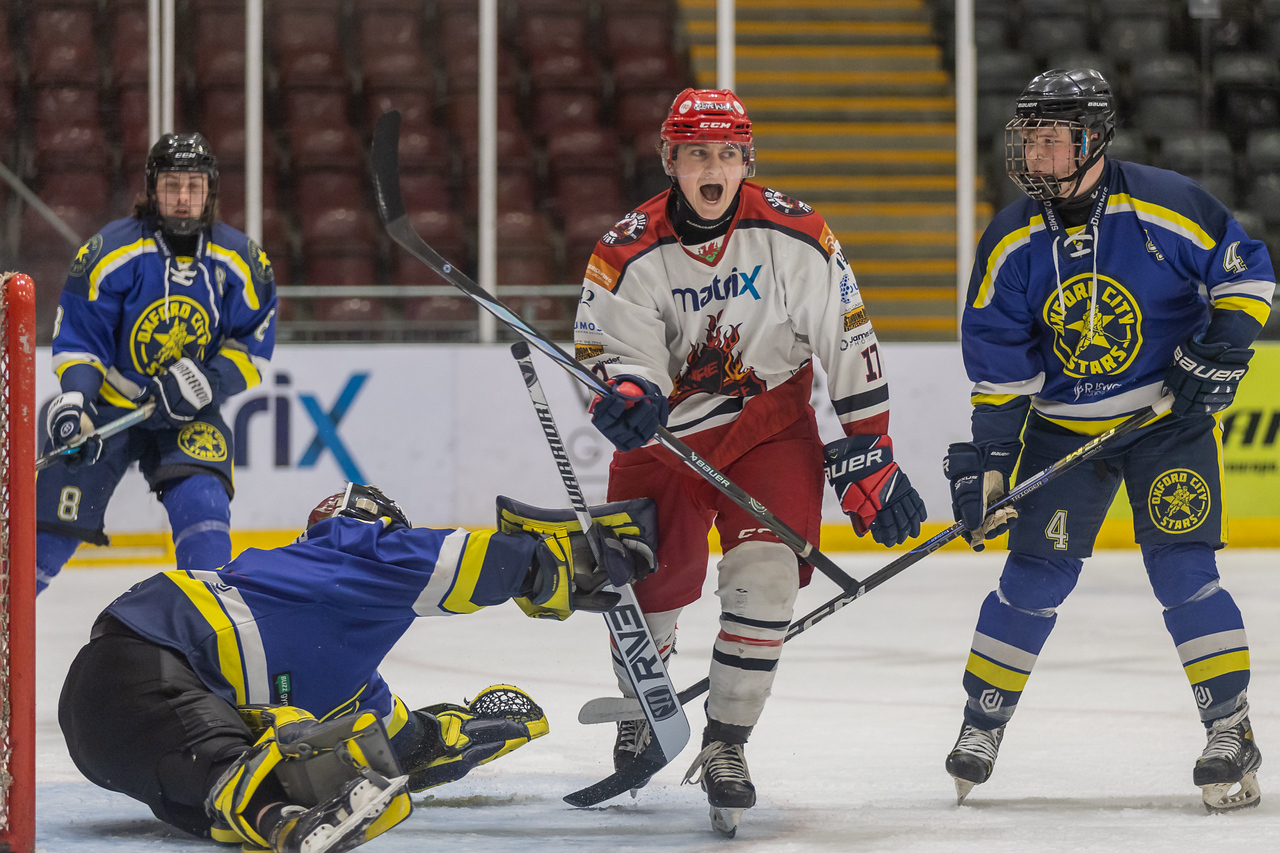 After an intense five minutes of overtime playing 3 v 3 and then 4 v 3 due to a penalty against the Stars went down to the wire and ended with no further goals, the game went to penalty shots for the second time against Oxford this season.