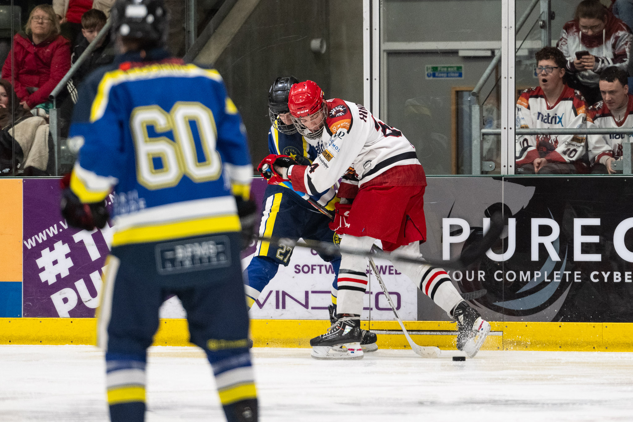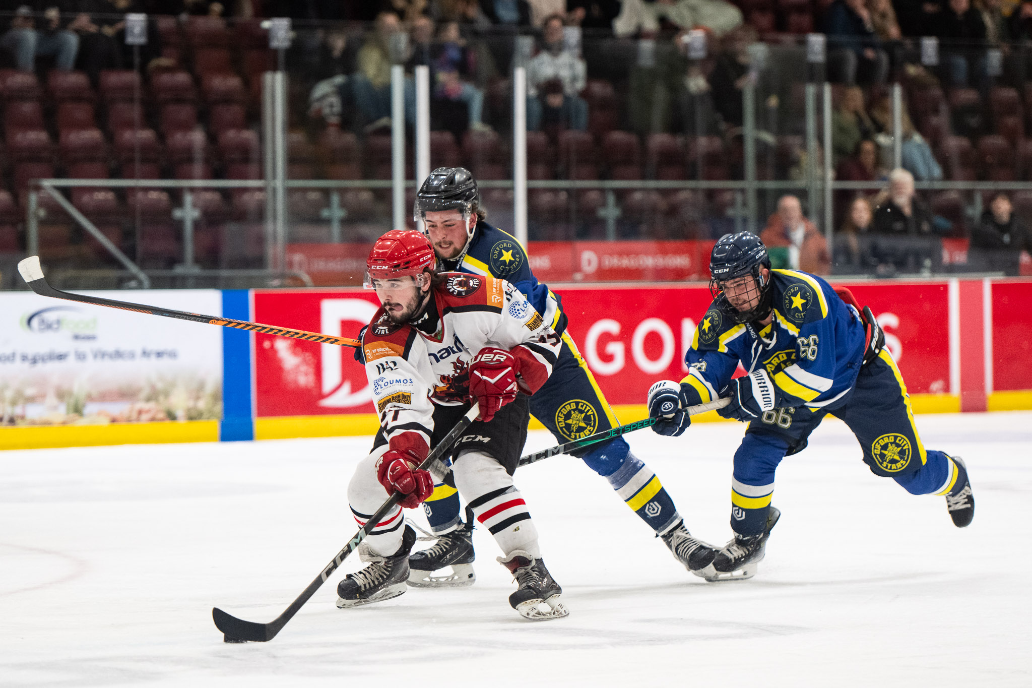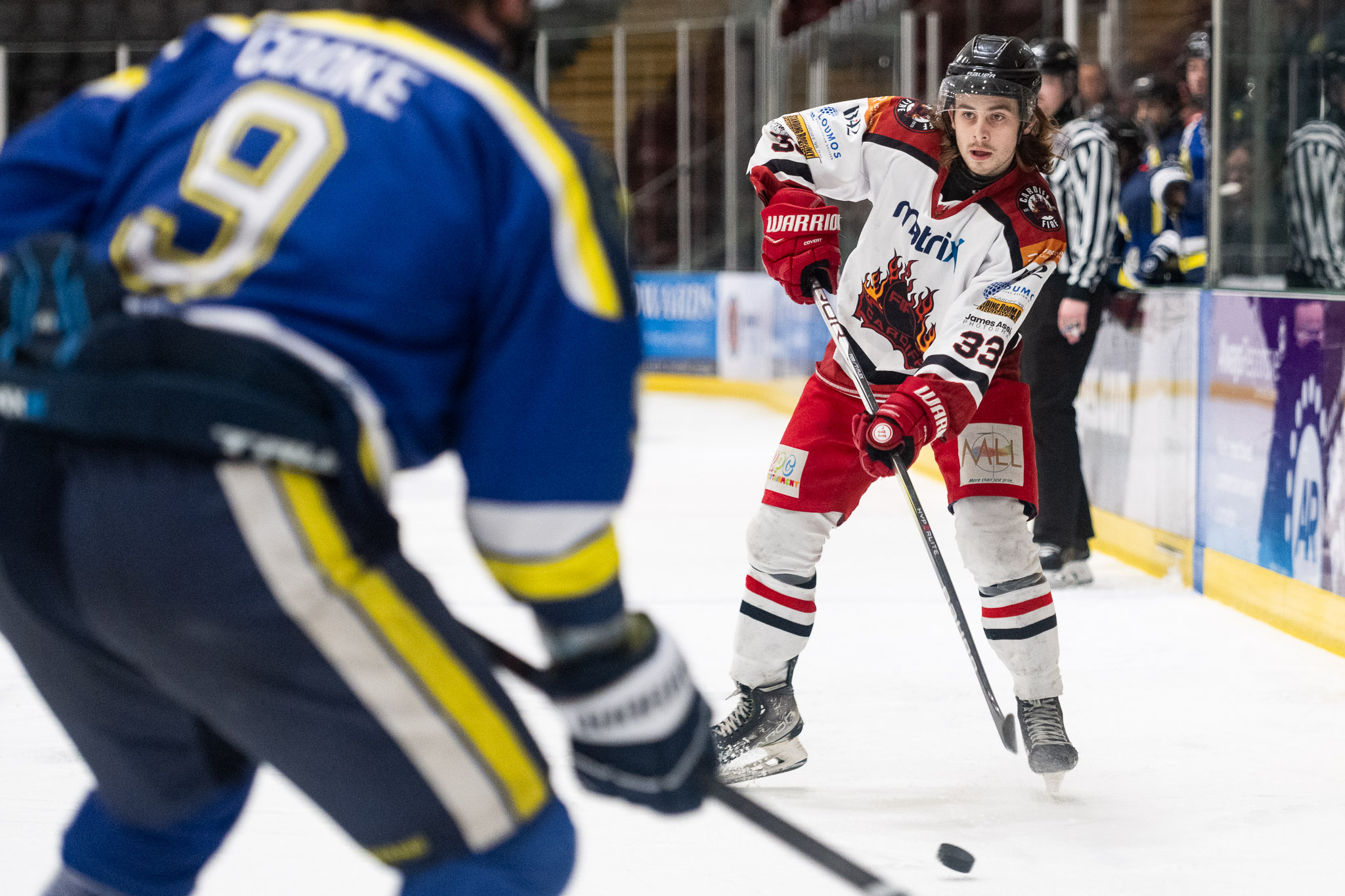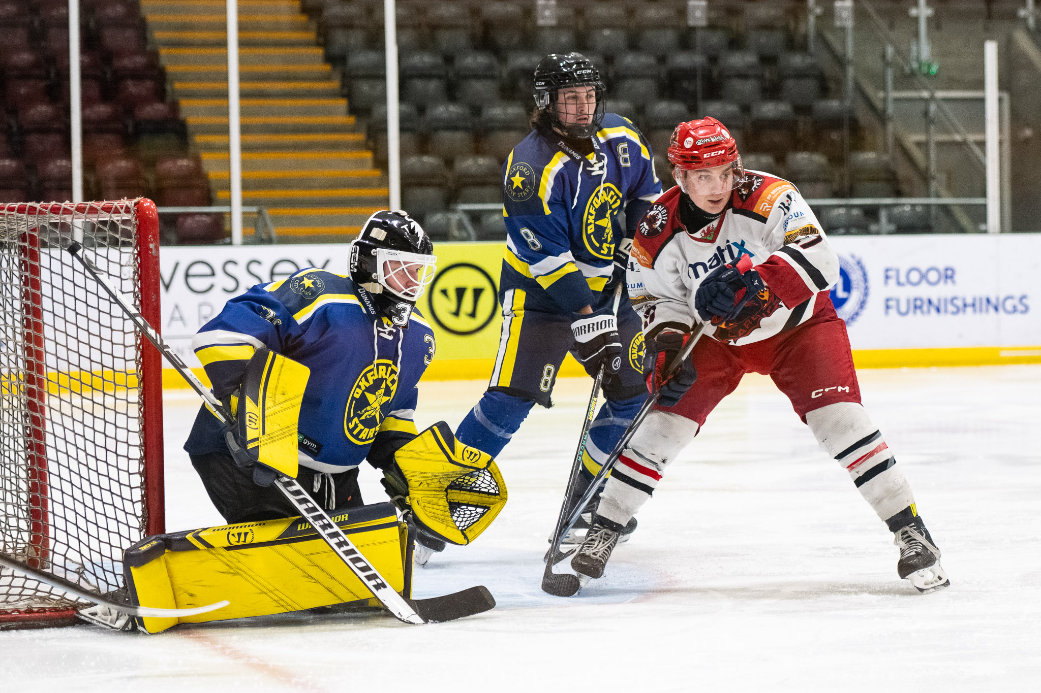 Fire tried to keep the momentum going into the final period, possession being in favour of Fire throughout. After a number of near misses #34 Bailey Hind-Pitcher secured a goal, with his second assist of the night #28 Llewellyn and #78 Ian Spridgeon timed at 46:50. However, again the Stars were close behind to return the goal and even the scoreboard for the remainder of the third period.