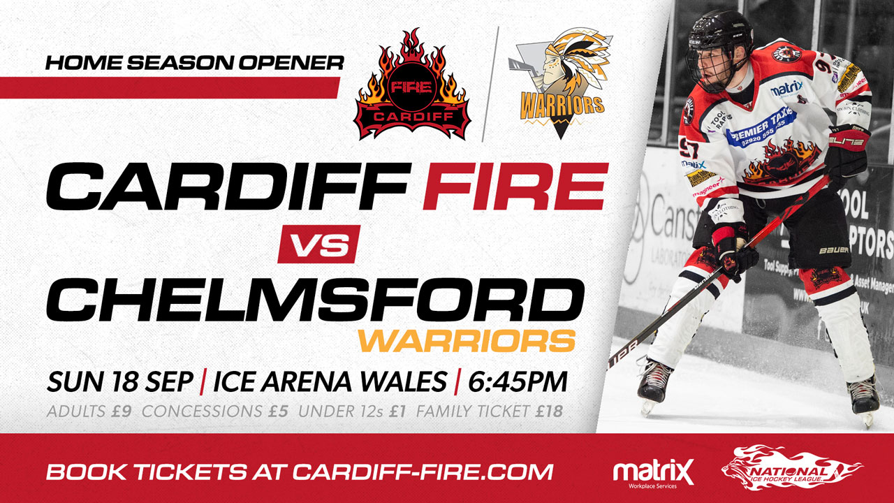 Fire hockey night is back in Cardiff! Tickets for our home season opener against Chelmsford Warriors this Sunday 18th September can be booked online HERE!