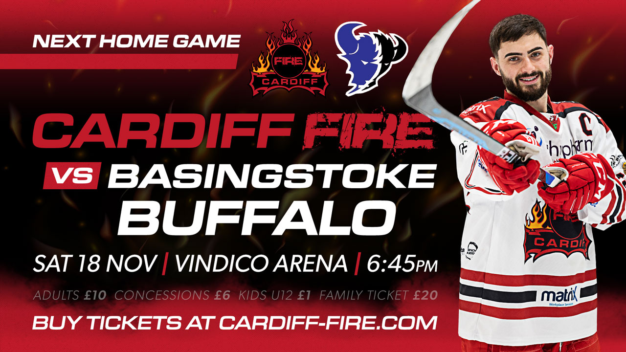 Face-off is at 6:45pm with doors opening at approximately 6pm at Vindico Arena (previously Ice Arena Wales) in Cardiff Bay.